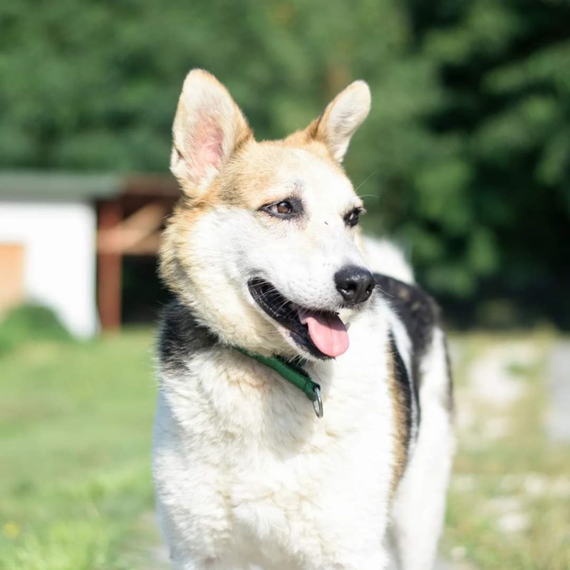 Ma smutną historię, tak jak i większość naszych podopiecznych. Jacky przyjechał z Ukrainy. Psy wojny, tak o nich mówią. W kolejnym schronisku spędził 2 lata w budzie. U nas pokazał się od innej strony. Jest kontaktowy, ciekawy i nie da sobie w kaszę dmuchać. Na smyczy idzie mu też już naprawdę dobrze.